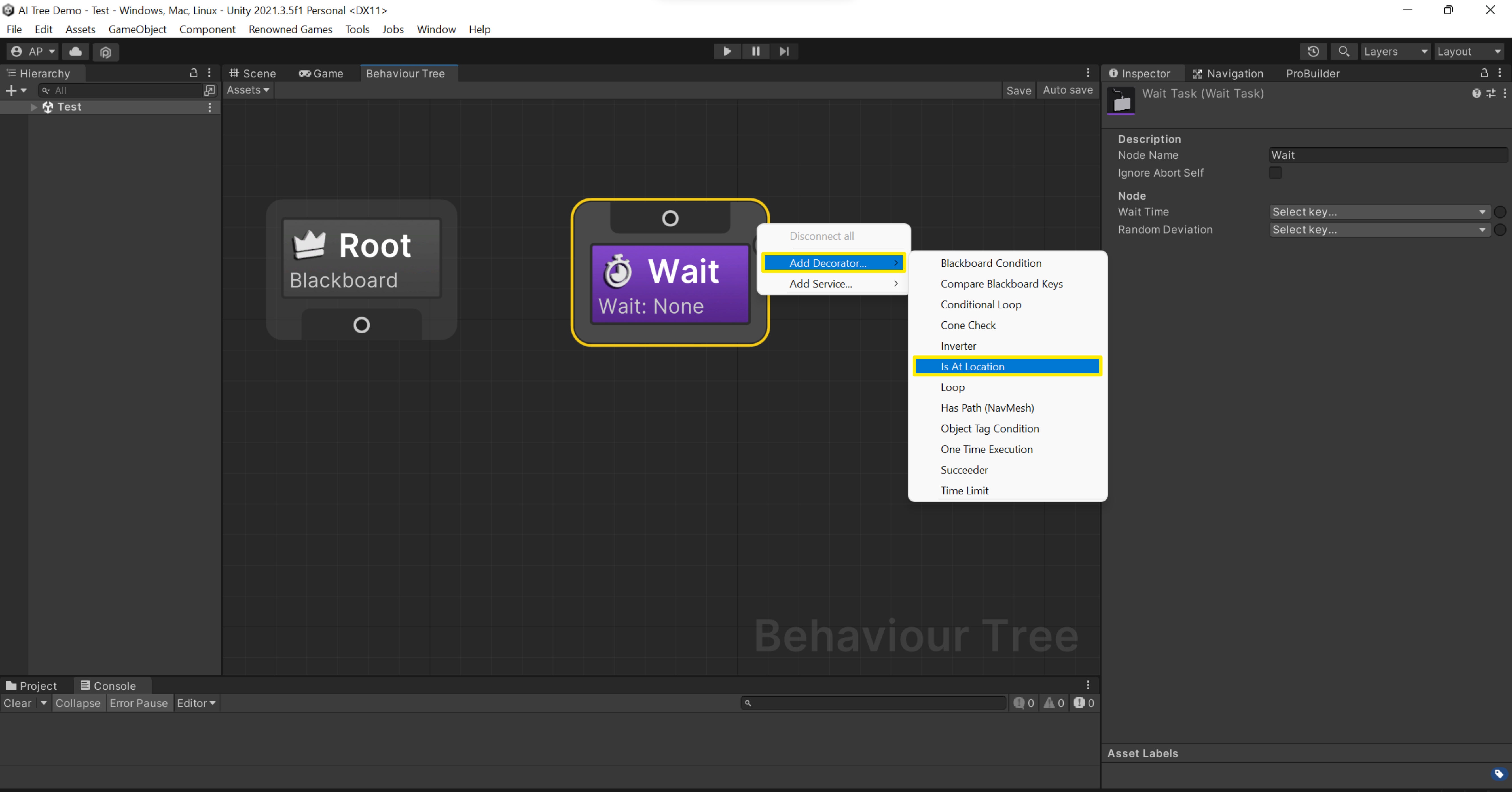 **To create it**, right-click on the node and select <mark style="color:purple;">Add Decorator/Is At Location</mark>.