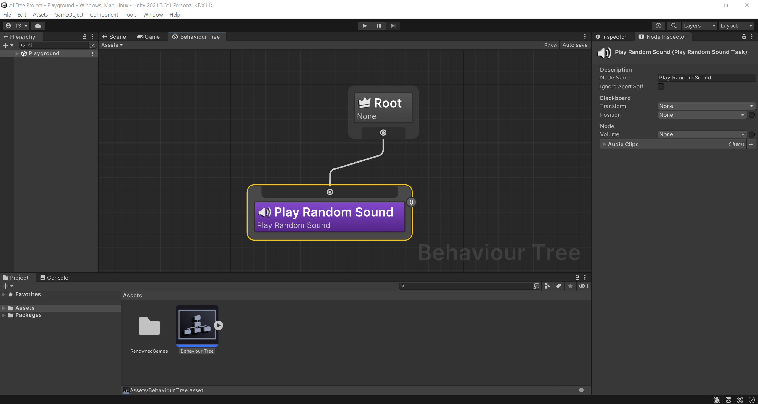 **To create it**, right-click in the editor and select <mark style="color:purple;">Create Node/Tasks/Audio/Play Random Sound</mark>