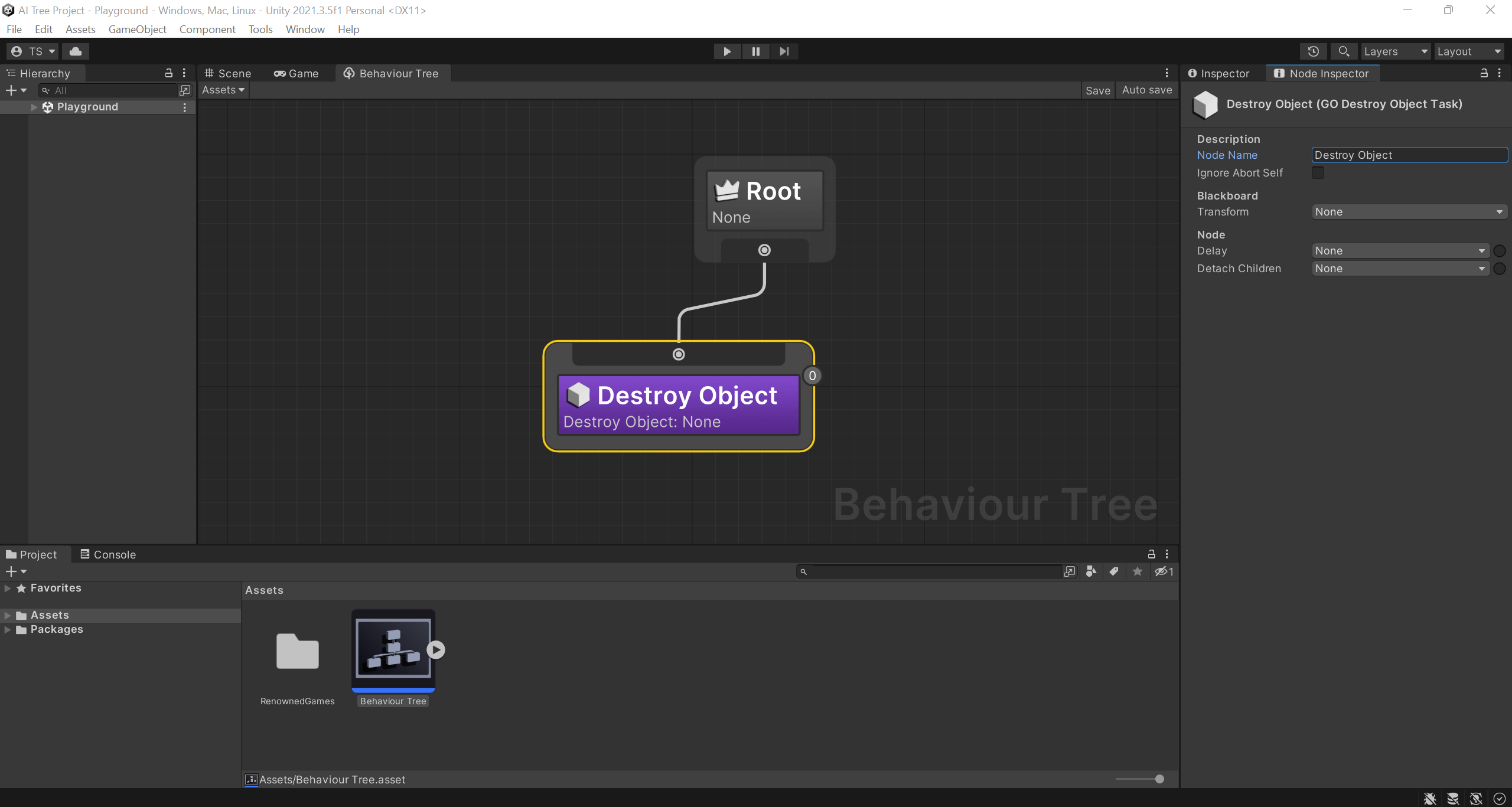 **To create it**, right-click in the editor and select <mark style="color:purple;">Create Node/Tasks/Game Object/Destroy Object</mark>